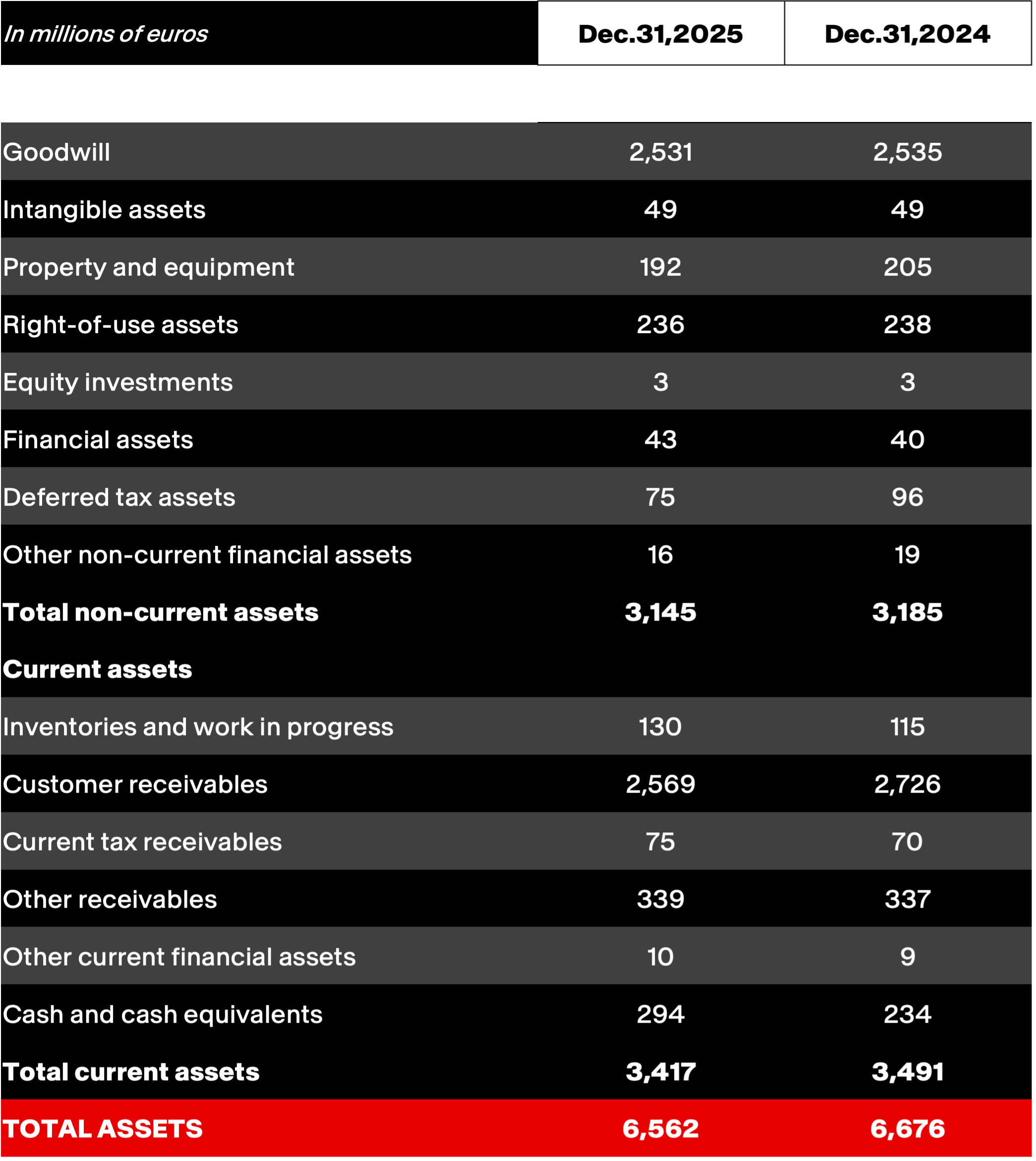 Income taxes for 2025 amounted to 90 million euros and remained stable year-on-year (89 million euros in 2024). The effective tax rate stood at 30.1% (compared to 31.9% in 2024), reflecting the implementation of the new tax group in France and Spain, formed from January 1, 2025.